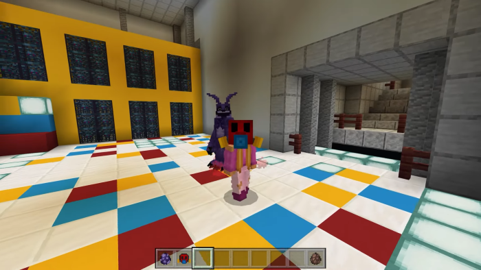 Mod Poppy Playtime Chapter 3 [JOY] é outro teatro de terror onde você pode testar seus nervos e lutar com um terrível animatrônico na vastidão do Minecraft. Nesta versão, entra em cena Joy, o novo herói da série de jogos, que anunciou uma caçada para você. A entidade sinistra tem uma crueldade incrível e não vai parar até lidar com você. E se você se atreve a entrar em sua residência, desejamos-lhe boa sorte.