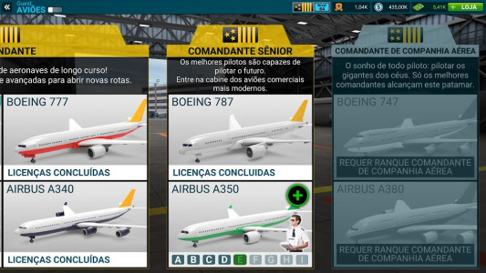 A experiência de voo começará com pequenas missões onde o jogador terá que superar diversos desafios. Desenvolva suas habilidades de pilotagem, conclua tarefas com precisão e eficiência. Aos poucos, você poderá melhorar sua frota de aeronaves adquirindo modelos mais avançados, expandindo sua companhia aérea e conquistando o mercado global de transporte aéreo.