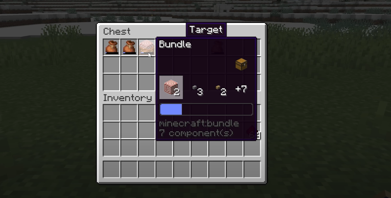 O Bundle é uma novidade que permite armazenar diferentes itens em um único espaço de inventário, o que permite usar o espaço de forma eficiente. Para usar essa funcionalidade, é necessário ativar o experimento ao criar um novo mundo. Essas funcionalidades ainda estão em desenvolvimento e podem sofrer algumas alterações. A criação do Bundle requer um couro e um fio, e a receita é desbloqueada ao obter esses materiais. Eles permitem empacotar diferentes itens em uma pilha única, e você pode adicionar ou remover itens facilmente delas. Na última versão Beta & Preview, o conteúdo dessas células pode ser extraído gradualmente.
