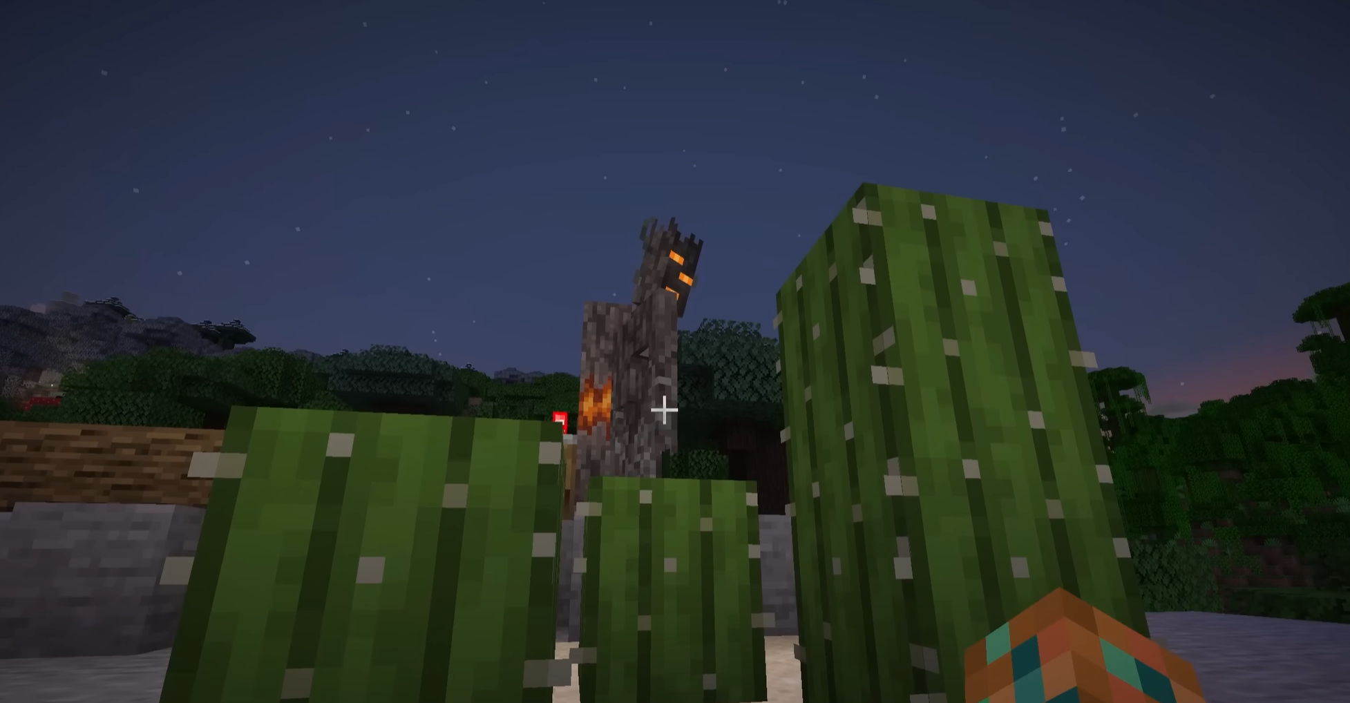 - Elementos ambientais (arbustos de vaga-lumes, folhas caindo, flor de cacto).