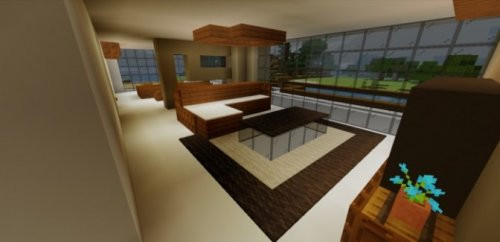Dentro de casa, também, tudo é muito bonito e estiloso. Um grande sofá branco, um tapete largo no chão. Complementa o ambiente silenciado, tornando-o aconchegante, iluminação oculta. Não há escada na casa, mas há elevadores confortáveis que você pode usar para subir ao segundo andar. Para isso, basta pressionar o botão. Armário espaçoso com roupas e um quarto onde você pode trocar de roupa. Além disso, temos um porão no qual está localizada a mesa de encantamento. Perto do porão há uma porta secreta, nas gavetas da mesa - muitos tesouros. A piscina está cheia de água, mas se você quiser que ela fique vazia, você pode drenar a água dela. Para isso, a piscina possui um ralo com tração. A porta é cuidadosamente escondida pelo desenvolvedor para tornar a aparência mais bonita. Se quiser, pode colocar outro, e também pode usar um sinal de índice com a direção onde está localizada a sua vila.