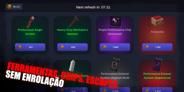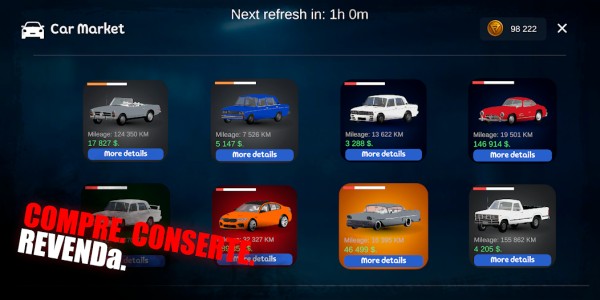 Bem-vindo a um mundo onde os carros não são apenas meios de transporte, mas seres vivos com passado, caráter e segredos. Aqui, cada modelo é como um animal na selva: desde a silenciosa e confiável "tartaruga compacta", que passou toda a vida na garagem, até o "predador ferido" — um carro de drift que sobreviveu a dezenas de corridas e acidentes. Sua tarefa — é se tornar um caçador que sabe ler pistas. Os anúncios não são apenas textos, mas mapas cheios de dicas. Detalhes ocultos, frases estranhas, fotos em ângulos incomuns — tudo isso pode revelar mais do que o próprio vendedor.