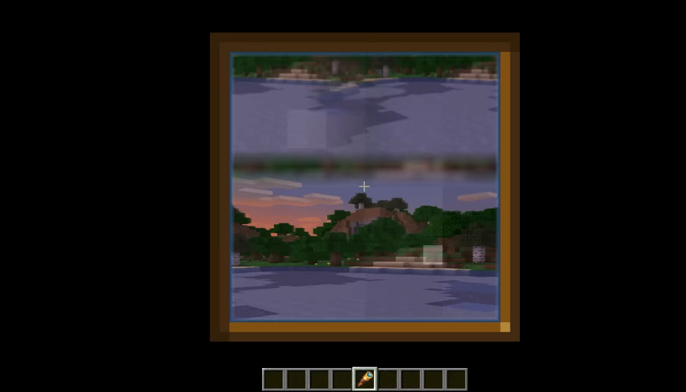 Pelo visto, a visão de aranha é bem mais complexa do que eu pensava. O Minecraft caprichou nos detalhes: virando aranha, você passa a ver o mundo em vários segmentos — e esse efeito permanece mesmo usando o telescópio. Eu literalmente me senti um ser com «outro jeito de pensar». O mais curioso — a imagem não fica mais familiar nem olhando pelo telescópio. Ou talvez por isso mesmo fique ainda mais divertida!