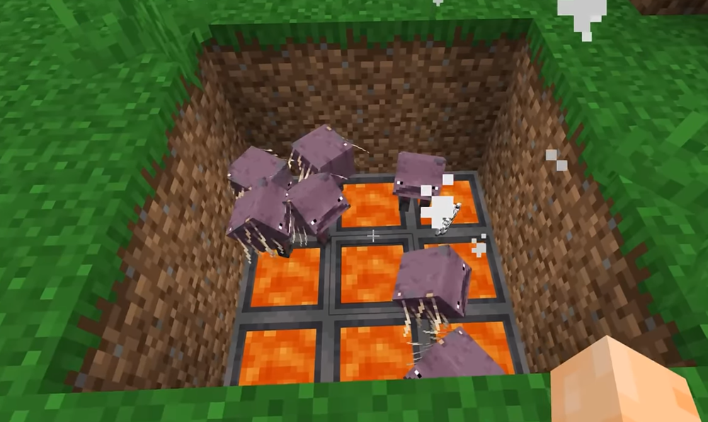 A cena era esta: os striders na sua nova localização «turística» parados sobre os caldeirões cheios de lava, e eu esperando que eles se aquecessem e brilhassem como luzes de Natal. No primeiro minuto — eles continuavam tremendo como antes, com a cor apagada, passos lentos. Não via mobs tão desanimados há muito tempo — parecia que mentalmente eles perguntavam: «Sério, esse é o seu experimento?!»