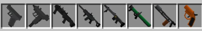 - A escalação é representada por: metralhadoras, pistolas, lançadores de granadas e uma espingarda.