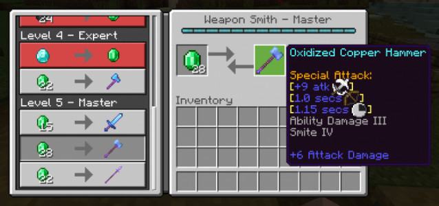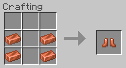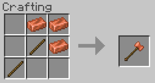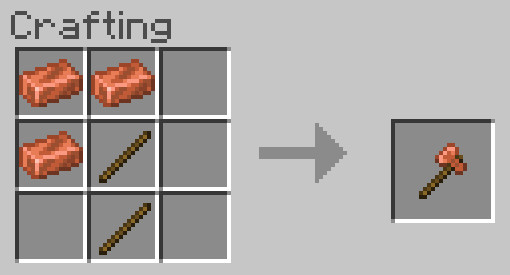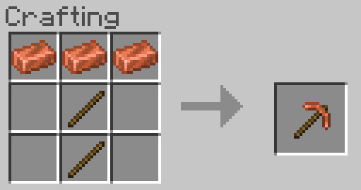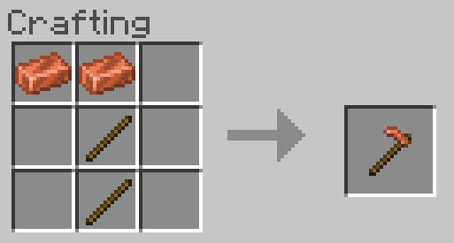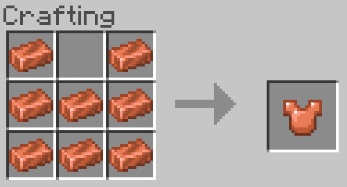 Vale alertar que objetos feitos de cobre são muito frágeis. Você pode tentar usar o encantamento, mas nem sempre funciona como deveria. De acordo com as características da armadura de cobre, elas correspondem à cota de malha, e as ferramentas para extração de recursos podem ser carregadas com as duas mãos.