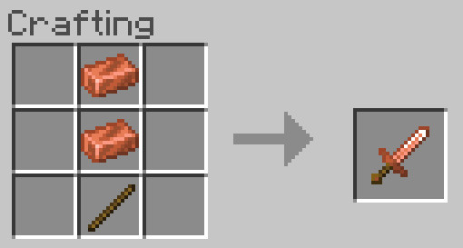 Em princípio, não é segredo que um elemento tão útil como o cobre apareceu no mundo do Minecraft. Infelizmente para nós (e para a compra de metais não ferrosos), é impossível obter equipamentos deste material ou elementos derivados na versão clássica do jogo. Em conexão com esse recurso da jogabilidade, o Equipamento de cobre resolve esse problema introduzindo toda uma lista de ferramentas, uniformes e, claro, armas desse material na “caixa de areia”. Os recursos adicionais estarão disponíveis no modo criativo. Você pode encontrar receitas detalhadas para criar itens de cobre nas fotos abaixo.