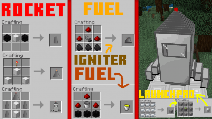 Que voo espacial está completo sem um foguete? Uma opção de design ideal seria uma lançadeira, que pode ser criada de acordo com a receita abaixo. Não o SpaceX de Elon Musk, mas pelo menos alguma coisa. E não se esqueça do combustível especial com o qual você encherá sua nave. Existem 2 misturas para escolher.