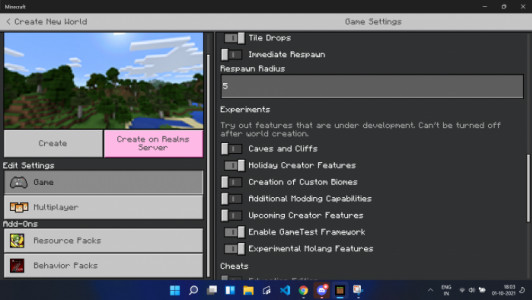 Para que o mod funcione, você precisa ativar as opções experimentais nas configurações do mapa