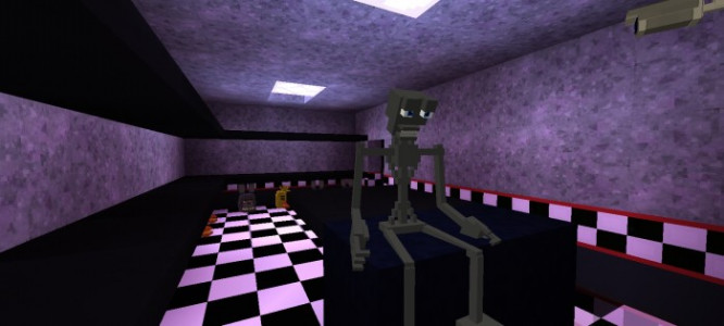 A popularidade da série animatrônica de terror não está disposta a diminuir. É isso que os desenvolvedores de add-ons para Minecraft usam e regularmente nos oferecem novas histórias sobre esses heróis assustadores. O mapa FNaF Five Nights at Freddy's é outra forma de se encontrar no centro da história da pizzaria e seus “habitantes amigáveis”, onde você pode testar a força de seus nervos. O objetivo da missão permanece inalterado - você tem que sobreviver em um prédio fechado, ao longo dos corredores pelos quais vagam multidões perigosas. Olhe ao redor com cuidado e se você ouvir ruídos estranhos, se eu fosse você, não pararia por aí.