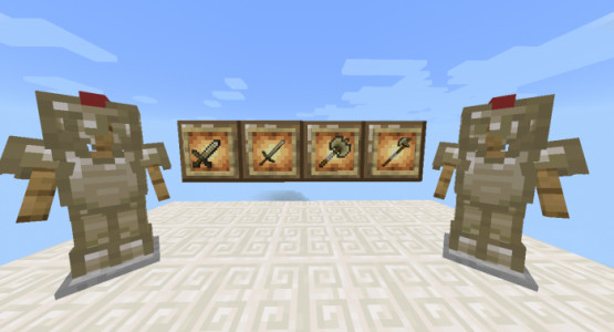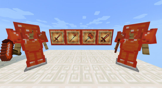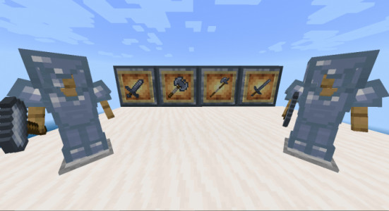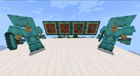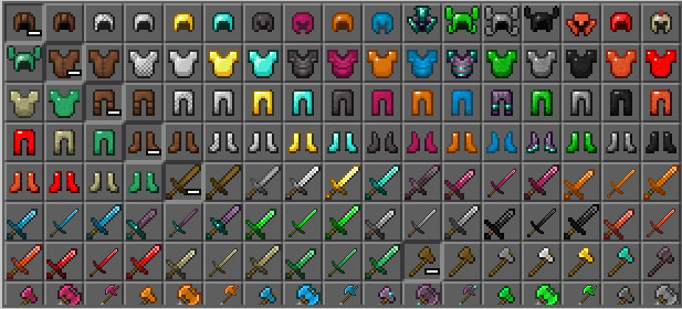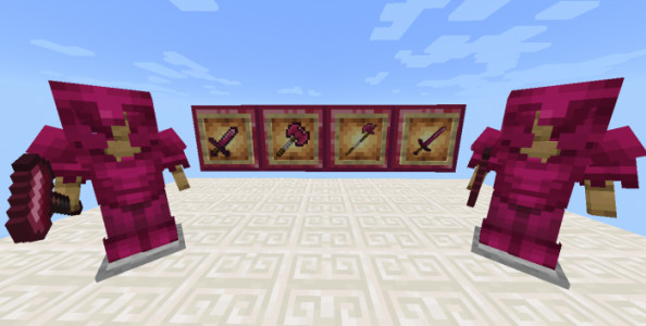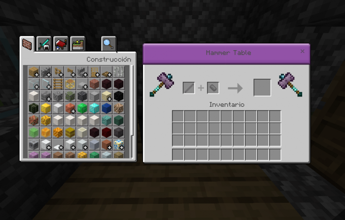 Para criar, você precisa criar uma bancada de trabalho especial a partir dos elementos deste addon. E nele já pegue ferramentas e armaduras.