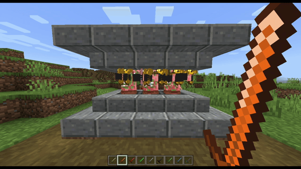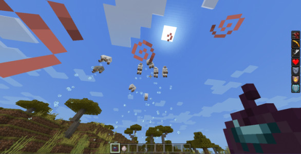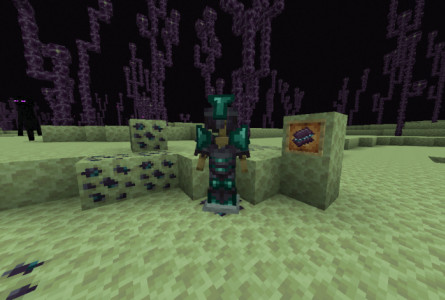 - Comer e agachar uma maçã enderite faz com que mobs em um raio de 22 quarteirões flutuem no ar;
