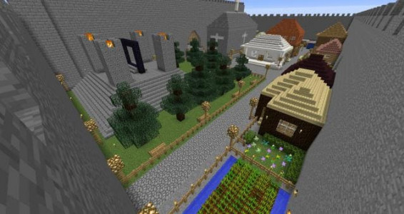 Fortaleza defendida - o esquema é um enorme castelo, cercado por muros altos em todo o perímetro. Fora da fronteira interna da fortaleza existem pequenas casas, plantações de jardim e até uma igreja. O autor da assembléia deu atenção especial à própria fortaleza, que fica na esquina de uma das paredes.