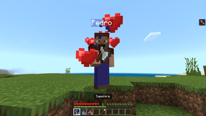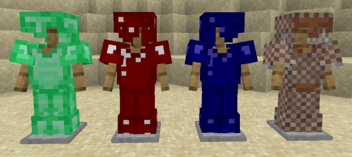O mais durável é esmeralda. O equipamento Ruby é semelhante em propriedades ao equipamento Diamond. Para criar, você precisa obter rubis, que estão espalhados por todos os tipos de estruturas. O Sapphire Set é melhor para encantar. Um conjunto cravejado é feito de cota de malha e couro e é semelhante em propriedades à armadura de ferro.