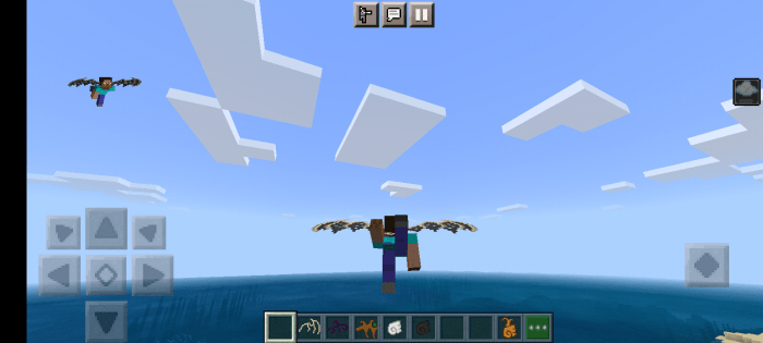 Elytras são uma boa maneira de viajar pelos locais do Minecraft, mas também precisam de algum trabalho. Mod Novas asas - adiciona novas variedades de asas, apresentando animações, texturas e tamanhos bacanas. O add-on oferece uma escolha de 6 modelos de asas que permitem que você voe no ar sem restrições. O mod também é aplicável em Survival.