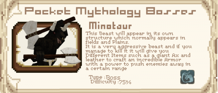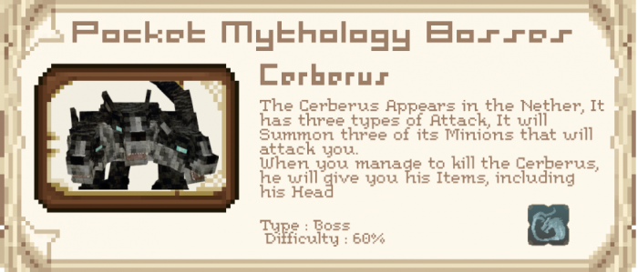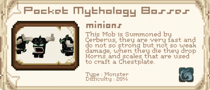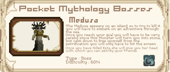O mod Pocket Mythology Bosses é um add-on para Minecraft dedicado à mitologia grega antiga. Aqui você encontrará representantes de oponentes deste tópico no modo de sobrevivência e seus chefes. O autor do mod tentou tornar isso difícil.