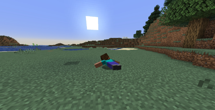 - Лежа можно пробираться через щели, размер которых составляет 1 блок.