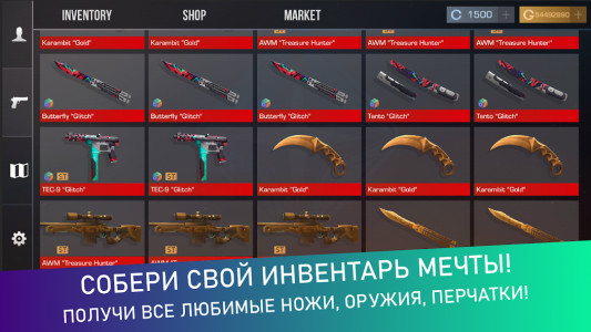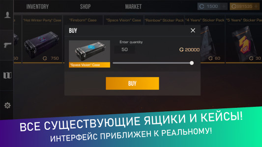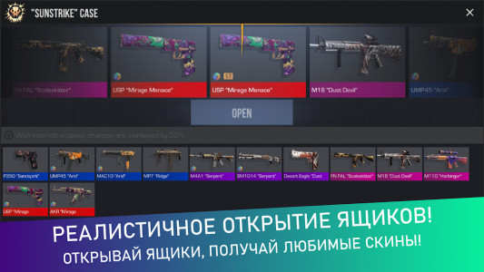 Кейс симулятор для Standoff 2 – данное приложение на андроид предлагает распаковать кейс и боксы, находя там редкие скины для ножей и оружия (продавая на Маркете). В данной версии можно вращать 3D модели. Данная игра – это симулятор, добытые экземпляры не получится использовать в официальной игре.