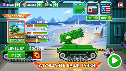 - Возможность более гибкой кастомизации своих танков и персонажей. Теперь доступны три различных скина для танков, а также возможность изменять внешний вид персонажа, включая шляпу, униформу и цвет кожи за счет заработанных монет;
