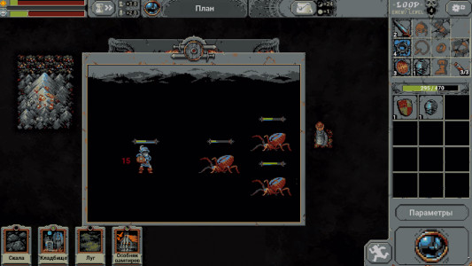 Во время сражений вы ничего сделать не сможете, просто наблюдать за процессом битвы. При этом, из врагов будут выпадать карточки. Которые будут вставляться только в нужные места или спаунить различных существ и объекты. К примеру, можете установить около деревни карточку вампиров – после этого, конечного деревня вымирает.
