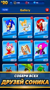 - Открывайте новых персонажей из вселенной Соника, включая Тейлза, Наклза и Эми, каждый со своими уникальными характеристиками.